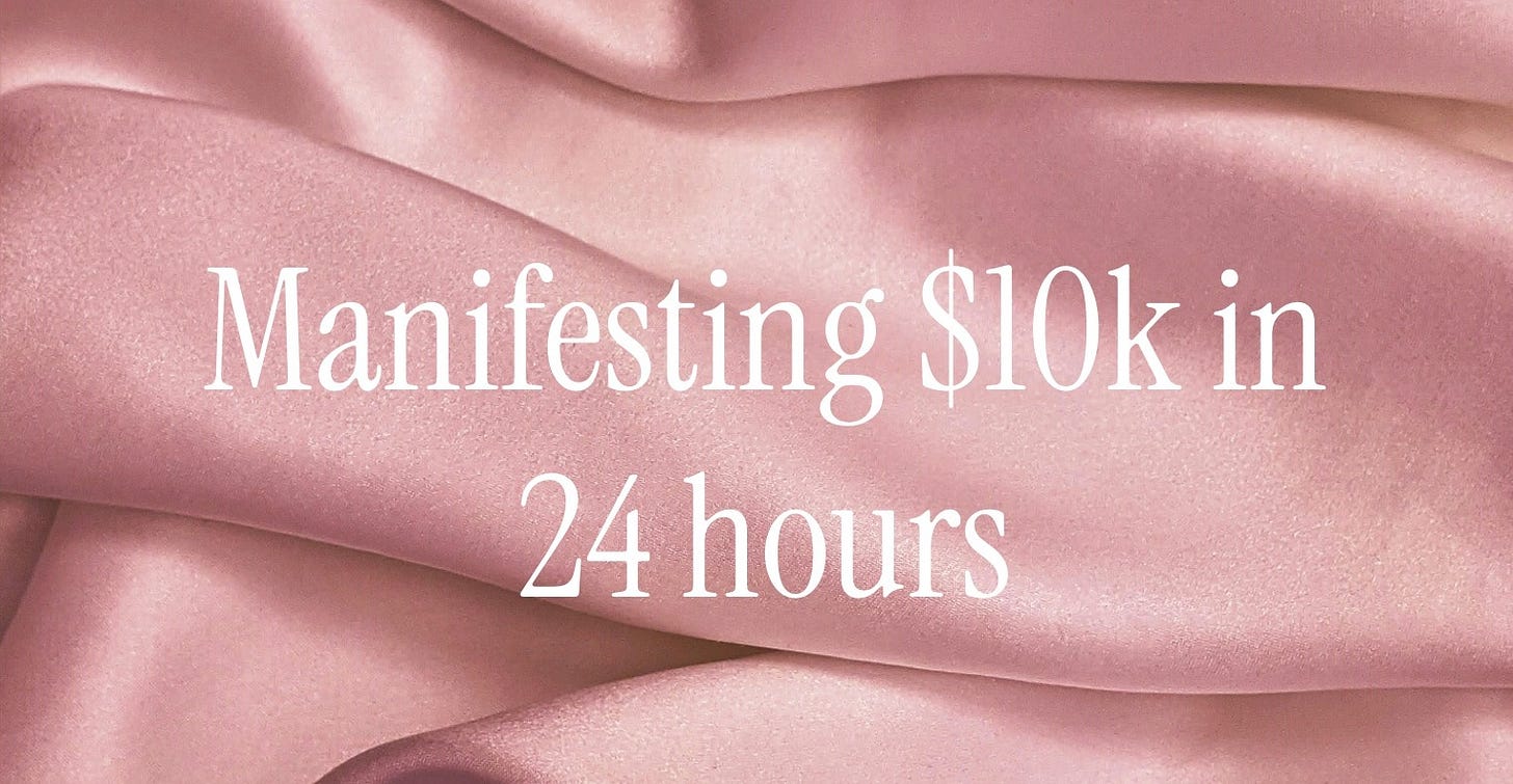 This method I have now used to manifest not only $10k, but much larger amounts through the years, as much as $60k. (That one took more like 9 days to show up but it did!)